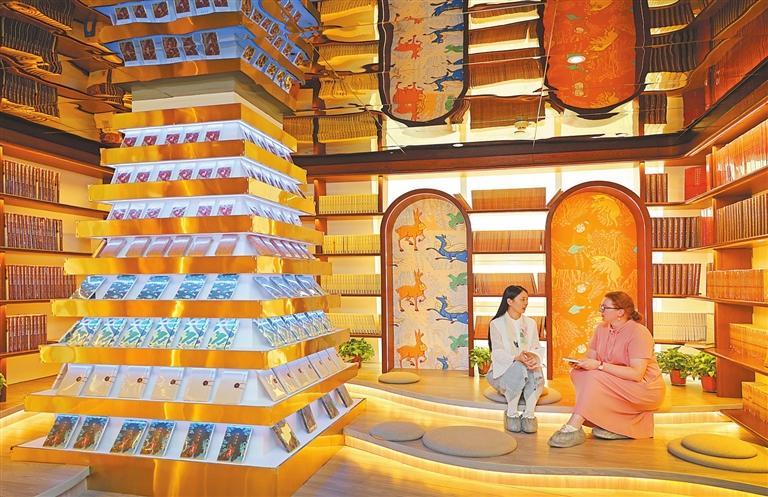 读者在敦煌书局沉浸式感受敦煌文化与艺术的魅力。(记者田蹊)