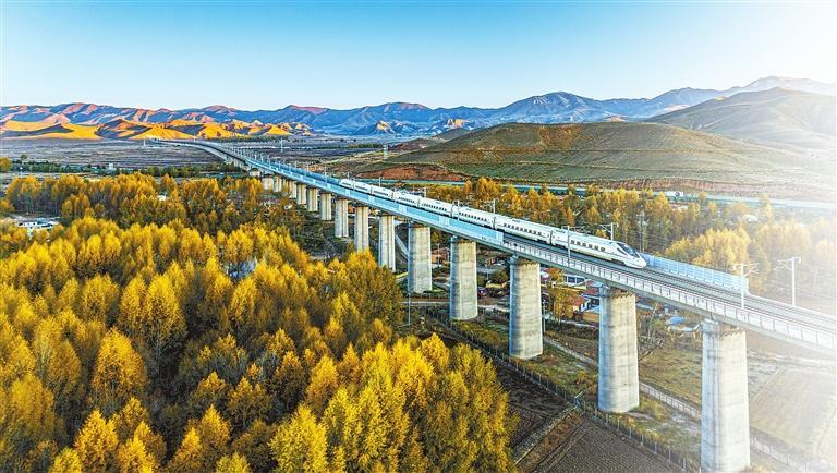 列车在兰张高铁兰武段天祝县境内行驶。(通讯员赵世鹏)