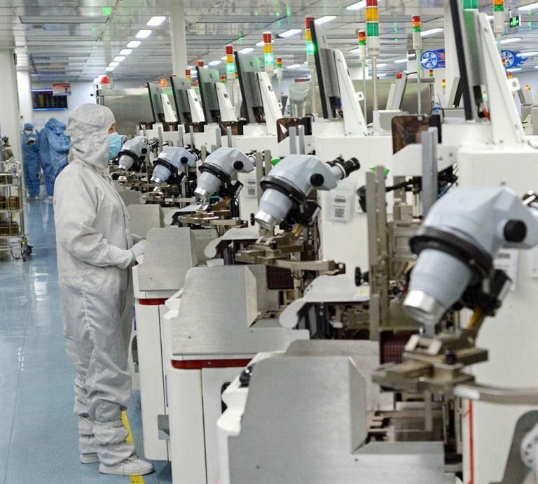 天水华天电子集团的工人正在车间抓紧生产。(通讯员孙镇)