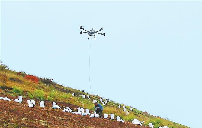 “以前在视频上看到无人机,觉得这高科技遥不可及,没想到现在用到了地头上。”药农李行军感慨道,“以前都是人拉肩扛运送药材,300多袋当归苗两三天才能背下山,现在无人机几个小时就运完了,真是方便又省工,比人工还码放得整齐!”