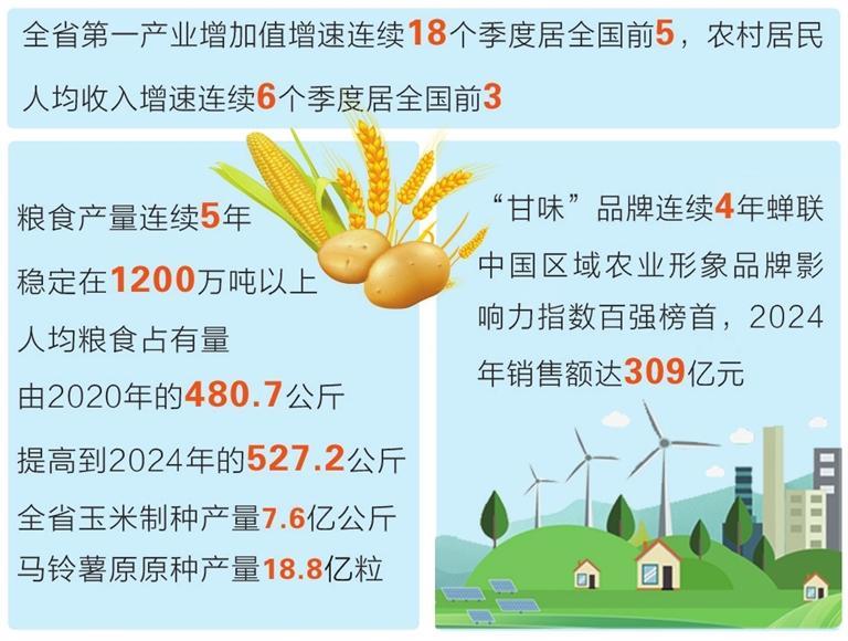 农业科技由“攻单项”向“体系化”跃升。建立健全农业关键核心技术协同攻关产业技术体系,农业科技进步贡献率从2020年的57%提高至2024年的60%。深入推进种业振兴行动,高水平打造全国农业高新技术产业示范区、国家级玉米制种基地、马铃薯和蔬菜区域性良繁基地,全省玉米制种产量7.6亿公斤,马铃薯原原种产量18.8亿粒。农村改革由“夯基础”向“增动力”稳步推进。新型农业经营主体蓬勃发展,农业龙头企业达3571家;农业社会化服务组织增至2.1万家、托管服务面积3900万亩次以上。(记者马国顺)