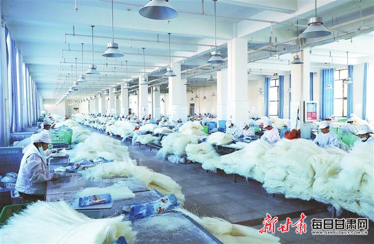 位于民乐县的银河集团粉丝包装生产线。新甘肃·甘肃日报通讯员 王晓泾