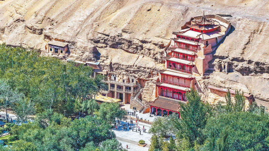 五年来,典范高地建设取得新成效。省委、省政府印发《关于进一步贯彻落实习近平总书记在敦煌研究院座谈重要讲话精神传承弘扬敦煌文化的实施意见》,举全省之力建设典范高地。敦煌研究院建院80周年之际,省委、省政府主要领导专程调研、召开座谈会,并致信祝贺,精心举办“2024石窟寺保护国际论坛”等重大活动,持续提升敦煌文化国内外影响力。省部共建持续走深。国家文物局和省政府签订《共建敦煌研究院协议》,双方重点从科研平台、石窟安全、“数字敦煌”等7个方面开展共建,努力实现敦煌研究院“一院六地”平衡协调高质量发展。石窟保护全面加强。投资3.5亿元,实施敦煌石窟保护利用和数字化工程98项,完成洞窟本体保护37个、预防性保护83个、展示利用25个,石窟文物保存状况大幅改善。科技研发创新赋能。中国—吉尔吉斯斯坦文化遗产保护“一带一路”联合实验室获科技部批复,建成全球首个文物保护多场耦合实验室,启用甘肃省石窟寺监测预警平台,在麦积山石窟建成地震监测台阵,承担国家重点研发计划等省部级课题96项,发表专著论文200余部(篇),在古代壁画、土遗址和文物数字化保护领域研发成套技术和装备,始终保持国际领先水平,制定国家和行业标准27项,科研成果服务于16省市150余项文保项目,并延伸至缅甸、吉尔吉斯斯坦等“一带一路”共建国家。流失海外敦煌文物数字化复原项目加速突破。获取海外藏敦煌文物高清图像10万余张,上线敦煌学研究文献库、数字藏经洞、数字敦煌开放素材库等数据库平台,获批建设敦煌研究院文化遗产科学数据中心,实现50余万份高清数字资源全球共享。“数字敦煌”迭代升级。已完成敦煌石窟壁画数字化采集300个洞窟、图像拼接处理186个洞窟、彩塑三维数字重建45身,制作全景漫游节目162个洞窟,全球实现30个洞窟整窟高清图像、6500余份藏经洞文献信息的国际共享,访客量达2300余万人次,覆盖全球78个国家和地区。敦煌学研究成果丰硕。加强敦煌乐舞、服饰、医药、石窟建筑和艺术研究,实施国家社科基金重大项目等省部级以上课题70余项,出版学术成果950余部(篇),办好《敦煌研究》和《石窟与土遗址保护研究》,打造享誉世界的敦煌论坛品牌,汇集全球敦煌学研究最新成果,牢牢掌握敦煌学研究国际话语权。经过五年实践,形成的石窟保护“敦煌经验”,文物科技“敦煌标准”和遗产管理“敦煌模式”,为全球世界文化遗产保护管理提供了“中国方案”,敦煌研究院已成为我国拥有世界文化遗产和全国重点文物保护单位数量最多、跨区域范围最广的文博管理机构。