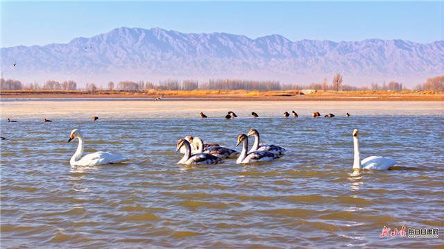 雪落临泽添冬韵 戏水天鹅画中画