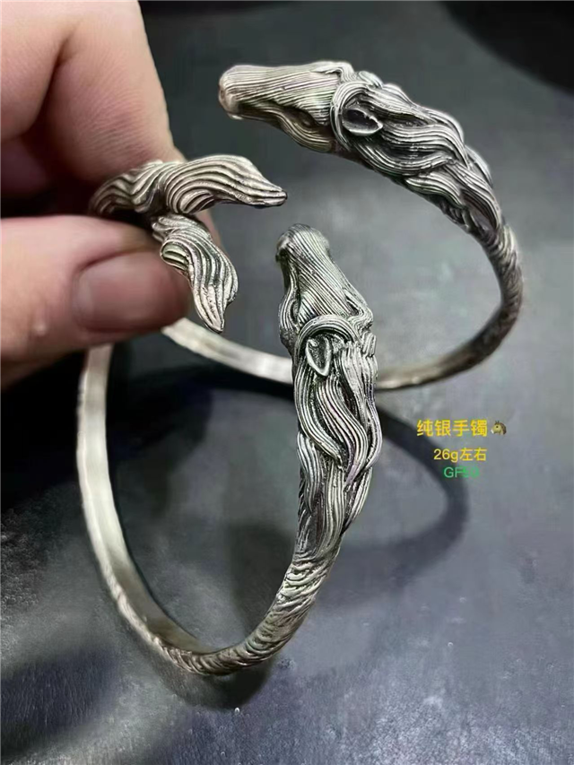 以肃北草原千年马文化为魂,取黑山岩画古马图腾为形,这只纯银手镯是非遗匠人与游牧文明的跨时空对话。镯身采用非遗银饰锻造工艺,以做旧纹理还原岩画的古朴质感,立体马头昂首而立,鬃毛肌理清晰可见,仿佛能听见草原骏马的嘶鸣。50-52克足银质地厚重温润,开口设计贴合腕间,既是随身佩戴的精致饰品,也是承载肃北非遗温度的文化信物。恰逢马年,腕间的马头图腾将草原的辽阔气运与新年的顺遂祝福,凝为触手可及的陪伴。