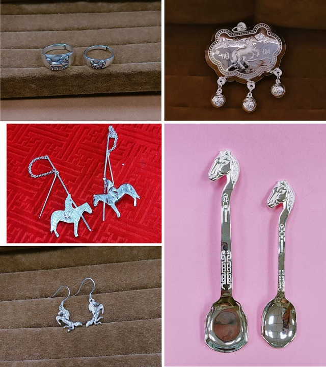 每一件饰品都由肃北县非遗匠人纯手工打制,通过錾刻、浮雕等传统工艺,还原蒙古马线条的古朴质感,既复刻了肃北蒙古马的原始张力,又承载着“马到成功、龙马精神”的吉祥寓意。纯银材质的温润厚重,搭配草原文化符号的精妙设计,让这些饰品既是可随身佩戴的精致配饰,也是藏着肃北记忆的文化藏品。