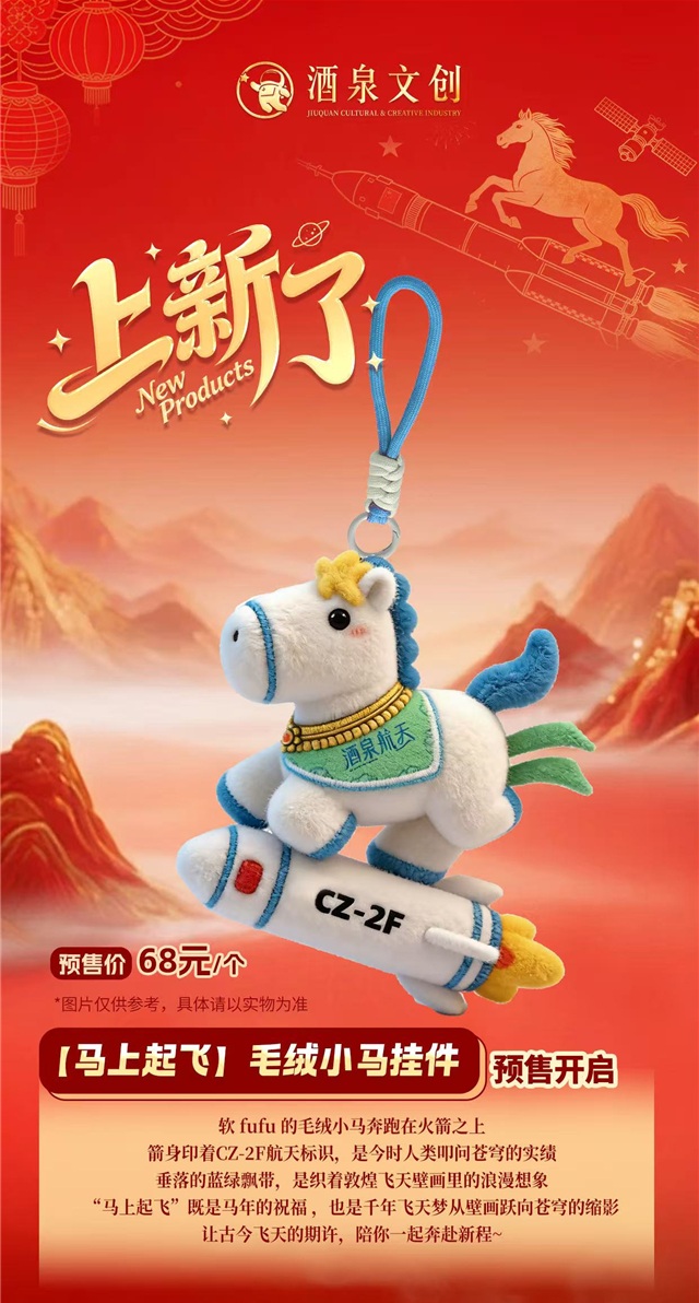 软绵绵的毛绒小马奔跑在火箭之上,箭身印着CZ-2F航天标识,是今时人类叩问苍穹的实绩垂落的蓝绿飘带,是织着敦煌飞天壁画里的浪漫想象。“马上起飞”既是马年的祝福,也是千年飞天梦从壁画跃向苍穹的缩影让古今飞天的期许,陪你一起奔赴新程。