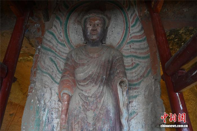 图为马蹄寺石窟群窟龛里的造像。(资料图)戴文昌 摄