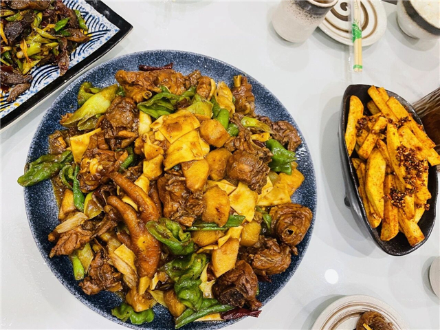 妈妈做的大盘鸡是家常里最动人的滋味,绵软的土豆与粉条裹满了鸡肉的香味,辣椒的清爽、粉条的咸香层层铺展,再用温热的馍馍蘸满汤汁,那是武威人最勾魂的家乡味。一口下去,尽是岁月里的温情,像极了记忆里厨房飘来的、日复一日的烟火气息。