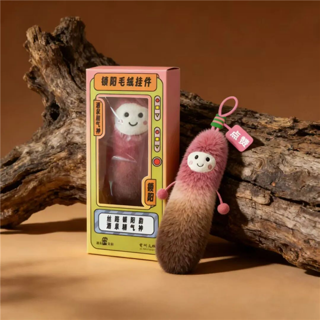 毛绒锁阳以酒泉戈壁特有的锁阳为原型,凝萃西北荒漠的风物底蕴,将这方土地独有的自然馈赠化作萌趣毛绒。锁阳扎根戈壁的坚韧,恰是酒泉地域精神的缩影,软萌造型让荒漠风物走出戈壁,成为可触可感的地域文化载体,唤醒对西北大地的自然与人文记忆。