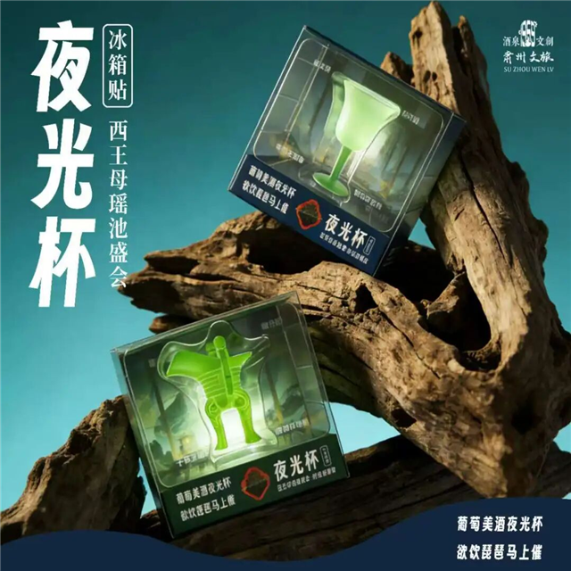 夜光杯冰箱贴取祁连墨玉之精,承两千载非遗匠心,缩酒泉夜光杯于方寸,凝《凉州词》的边塞豪情,藏丝路驼铃的悠远。月光下玉色温润,贴于冰箱,亦如把千年西域风华,揽入寻常烟火。
