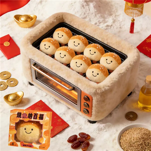 毛绒烧壳子以酒泉炕烤非遗小吃烧壳子为蓝本,还原西北特色的饮食技艺与民俗底蕴。烧壳子的炕烤工艺藏着酒泉人的生活智慧,是边塞地域民俗与饮食文化的交融结晶,蓬松萌趣的毛绒造型,让这份承载千年边塞烟火的非遗小吃焕新,让地域民俗与饮食文化鲜活传承、触手可及。