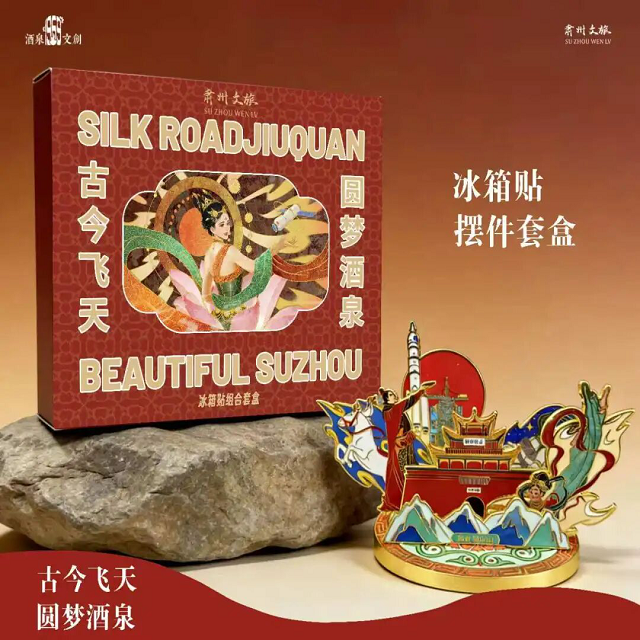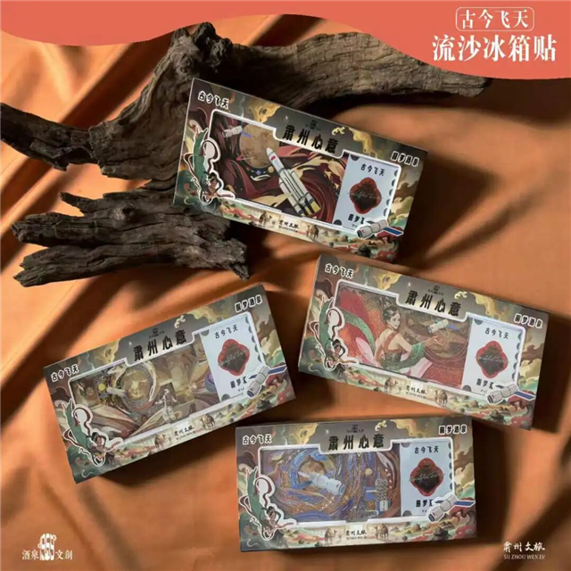 “酒泉风华”冰箱贴套盒融合六款主题图案,集成多种工艺,立体浮雕呈现航天、历史、自然之美,色彩与线条相得益彰,可自由组合,摆放各处皆融古今,触碰即遇时空旅程。