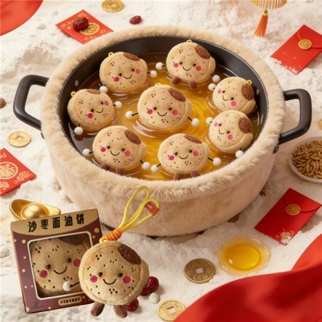 毛绒沙枣面油饼复刻酒泉非遗沙枣面油饼经典模样,揉进丝路边塞的饮食文化底蕴。沙枣甜香藏着酒泉人的家常烟火,亦是西北丝路饮食交融的鲜活见证,萌趣毛绒将这份代代相传的非遗美味活化,让边塞舌尖的古韵与温情,化作可拥可抱的文化小物,传承地道的酒泉风味与人文。