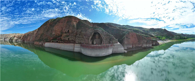 天梯山石窟旁的黄羊河水库:佛光与碧波