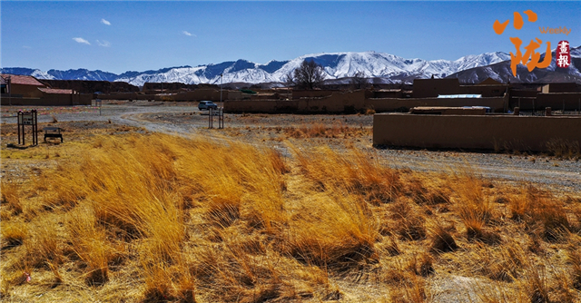 荒草漫过碎石地,土坯院落静卧在旷野,远处雪峰覆着皑皑白雪,澄澈蓝天作底。一辆车停在空地上,为苍茫的高原村落添了灵动的烟火气。
