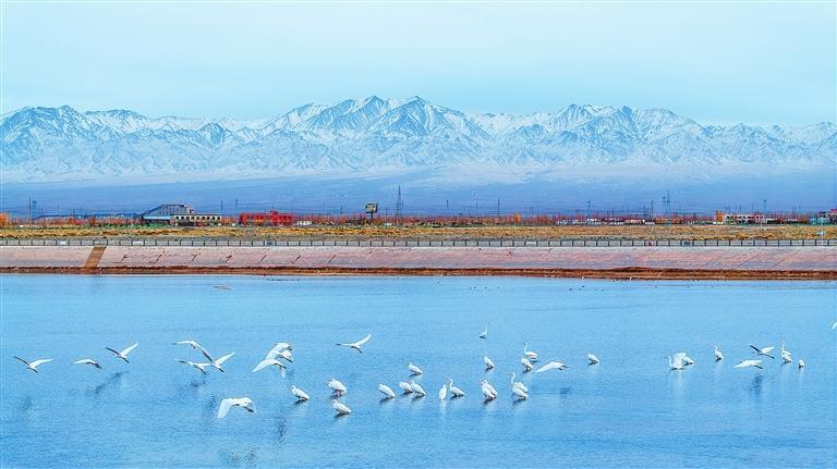候鸟落脚甘肃盐池湾国际重要湿地。(通讯员祁晶)