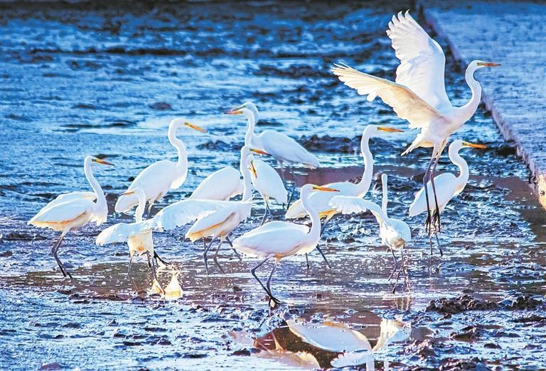 敦煌党河风情线迎来大批白鹭。(通讯员王斌银)