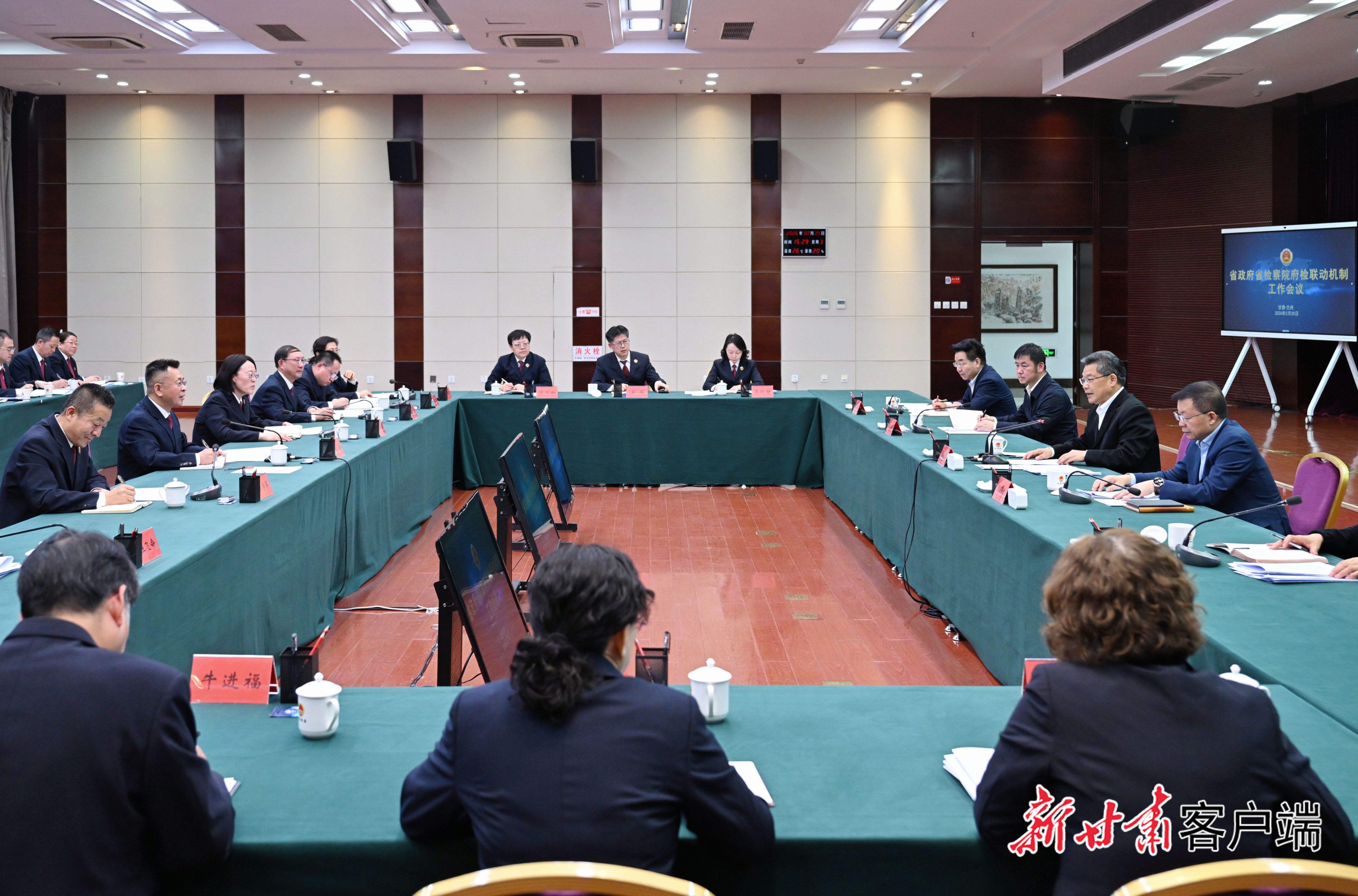 省政府、省检察院府检联动机制工作会议2月25日在兰州召开,省委副书记、省长任振鹤出席并讲话。他强调,要深入学习贯彻党的二十届四中全会精神,全面落实习近平总书记视察甘肃重要讲话重要指示精神,坚持把体现群众利益、增进人民福祉贯穿府检联动工作全过程,强化依法行政和检察监督协同发力,一体推进法治甘肃、法治政府、法治社会建设,深度服务高质量发展和现代化建设。