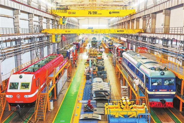 中车兰州公司总装车间,各条产线有序生产。
