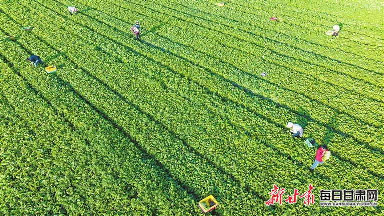 8月30日,张掖市甘州区上秦镇上秦村千亩蔬菜基地,菜农正在采收。新甘肃·甘肃日报通讯员 杨永伟
