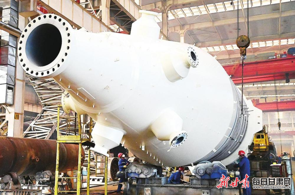 兰石集团高端装备产业园车间内,工人正在调试设备。
