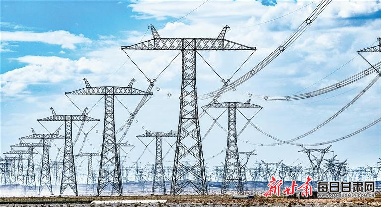 瓜州县境内一条条“高速公路”将电力输送至全国多地。新甘肃·甘肃日报记者 高樯 田蹊