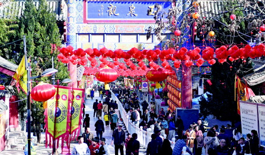 2月24日农历正月初八,2026年玉泉观“上九会”民俗文化活动在秦州区玉泉景区举办。景区内张灯结彩、喜气洋洋,市民游客拾级而上,系红绸、猜灯谜、祈福纳祥。