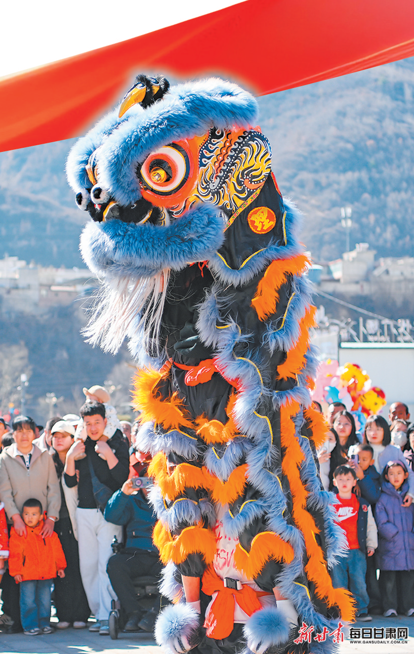 宕昌县时代广场舞狮精彩上演。新甘肃·甘肃日报通讯员 胡卫东