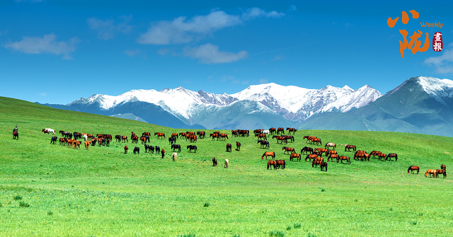 在山脚下的草原上,水草丰美,牛羊成群,骏马驰骋,牧人的歌声在风中飘荡。祁连山脉的轮廓在蓝天的映衬下显得格外硬朗、坚毅,高大山体阻挡了来自西北方的风沙,如同一位忠诚的卫士,守护着山脚下的广袤大地和生活在这片土地上的生灵。