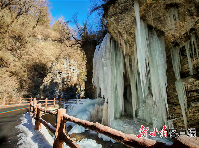 隆冬时节,陇南市宕昌县官鹅沟大景区内,云雾轻绕、冰瀑垂悬、溪水穿石,仿佛在天地间奏响一首灵动的冬韵交响曲,引人入胜。