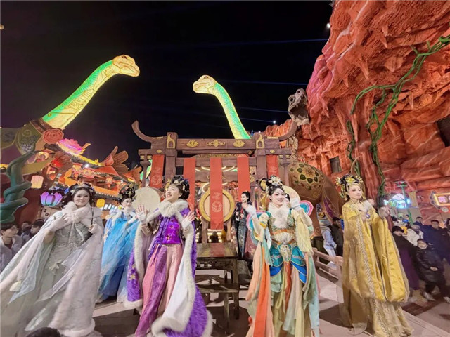 白日的不夜城藏着古今对话的玄机。恐龙造型、紫斑牡丹、彩陶等四大主题门楼前,游客排起长队打卡留念,刘家峡黄河巨龙装置搭配趣味AR互动,让孩子们在欢笑中触摸临夏的地质脉络。16个演艺舞台上,非遗茶艺舞蹈、“花儿”民歌轮番上演,四相葫芦、河州蛋雕等非遗体验区里,传统技艺在游客指尖焕发生机。61个情景商铺错落有致,本地风味与网红美食香气交织,从手工文创到特色小吃,每一处都涌动着烟火气息与消费活力。配套的游乐场、航天研学基地、VR体验馆覆盖全龄段需求,1400余个地下停车位让全家出游毫无顾虑,免门票政策更让这份欢乐零门槛可达。