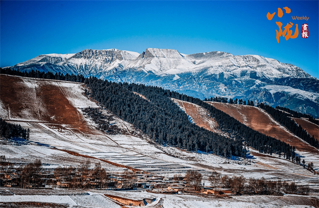 初冬的翠绿与雄伟的祁连山呼应成景,远远望去,整个山间宛如一盘秀美的精致盆景,格外夺目。林叶缤纷的冬日一点也不亚于百花争艳的春天。
