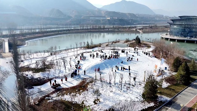 先去洮河如意湾,在冰雪乐园里撒野。这里不只是单纯的景区,更是交通与旅游结合的欢乐地,直接坐落在高速公路旁,一下车就能拥抱冰雪。