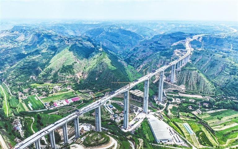 7月12日,G309线合水至西峰段公路盖家川特大桥建设有条不紊。(通讯员陈飞)