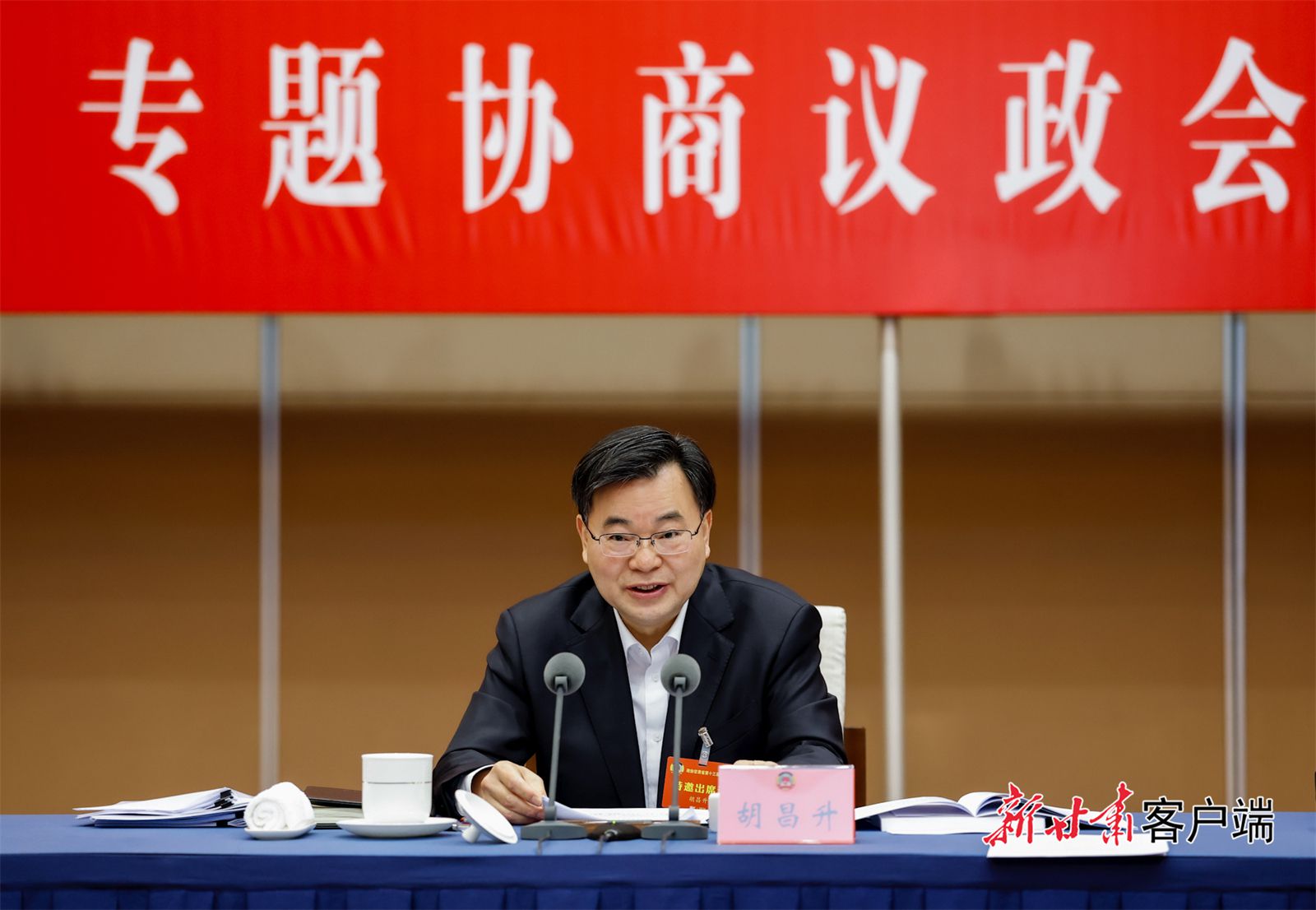 1月28日,政协甘肃省十三届四次会议举行专题协商议政会,省委书记、省人大常委会主任胡昌升到会听取意见建议。(记者孟捷)