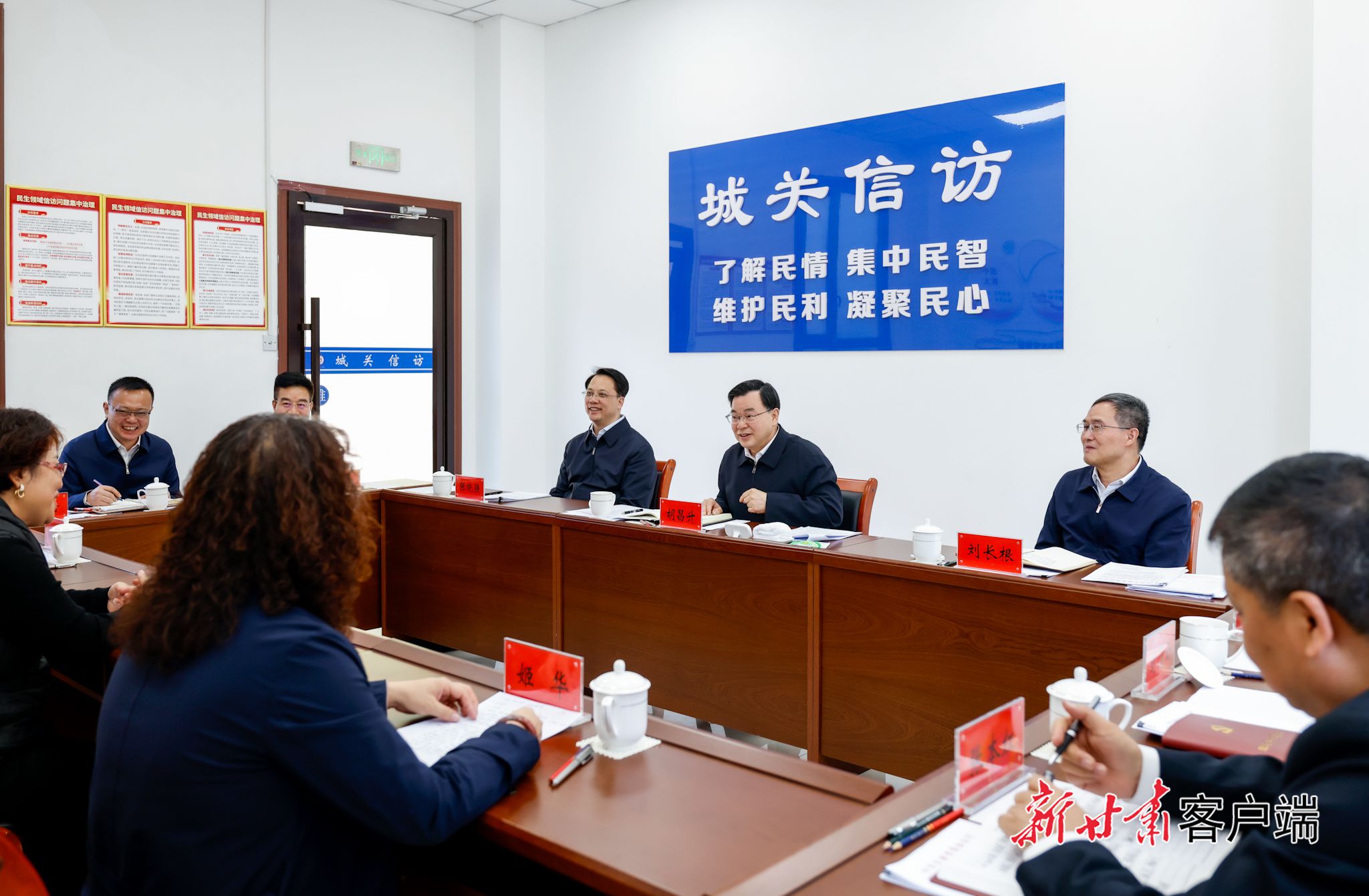 4月16日下午,省委书记、省人大常委会主任胡昌升在兰州市城关区接待来访群众,面对面听取群众诉求,现场研究解决问题。(新甘肃·甘肃日报记者孟捷)