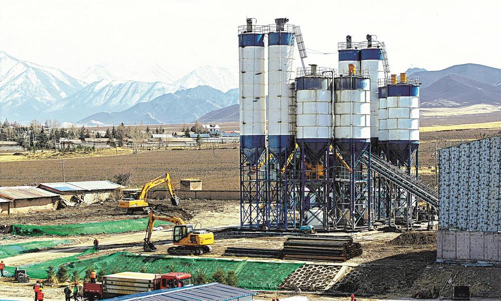 近日,民乐县张扁高速混凝土拌合站项目建设现场,工人们加紧作业施工。该项目投资7100万元,占地面积40亩,预计年生产混凝土28万立方米。 王晓泾 杨玉红 摄