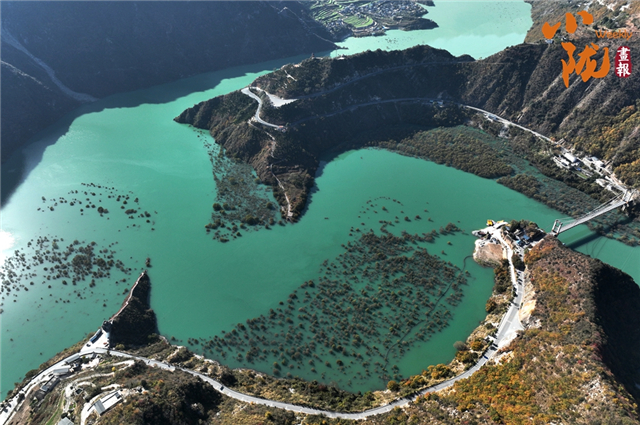 白龙江湍急的流速在此悄然蜕变为一湾温婉的碧波。水面澄澈如镜,映照出如江南般清浅而缠绵的景致。