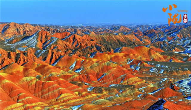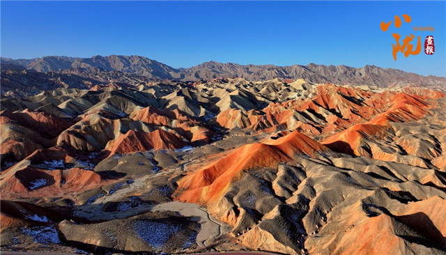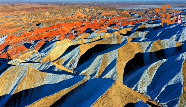 一场春雪后,张掖临泽七彩丹霞褪去了往日的张扬,化身为一幅“半是火焰、半是海”的水墨丹青长卷。