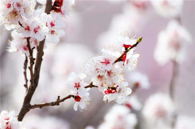 梅花是定西春天最早的信使。在乍暖还寒、草木未醒的时候,它已悄悄绽放。疏枝横斜,花朵不大,却清冽耐看,暗香浮动。没有江南的柔媚,多了几分高原的风骨,静静站在公园一角、庭院深处,告诉所有人:春天,在路上了。