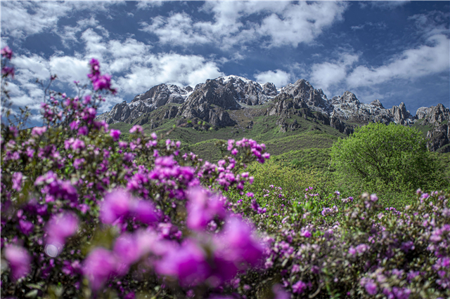 当平原的花渐渐落幕,高山的浪漫才刚刚开始。露骨山的高山杜鹃,在海拔较高的山林间盛放。红的似火,粉的如霞,白的像雪。最绝的是,山顶可能还有残雪,山腰已是花海,雪山、青松、繁花同框,这是只有定西深山才能看见的奇景。